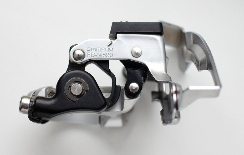 Передний переключатель Shimano Deore FD-M590 типа Top Swing с универсальным подводом троса.