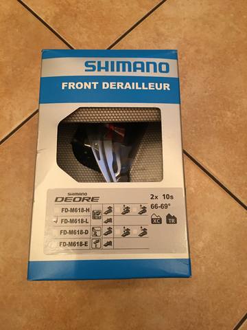 Переключатель передний Shimano Deore FD-M618-L, для привода 2x10 скоростей, нижний хомут 34,9 с адаптерами 28.6/31.8 мм, нижняя тяга.