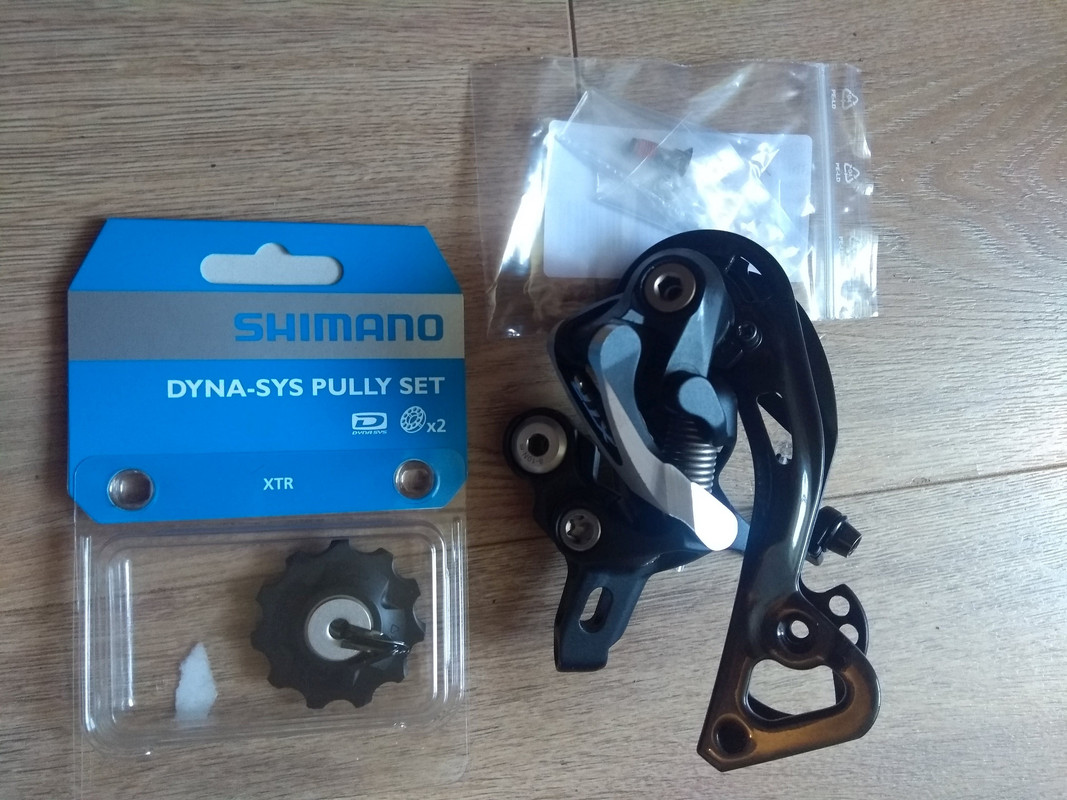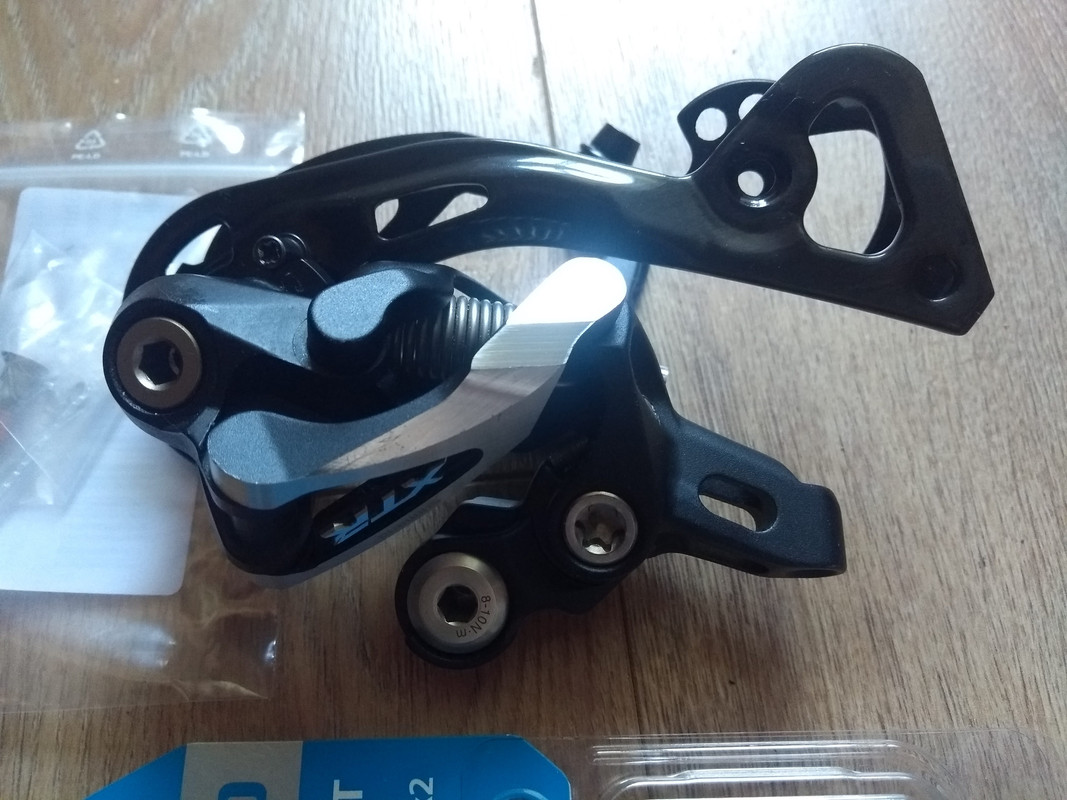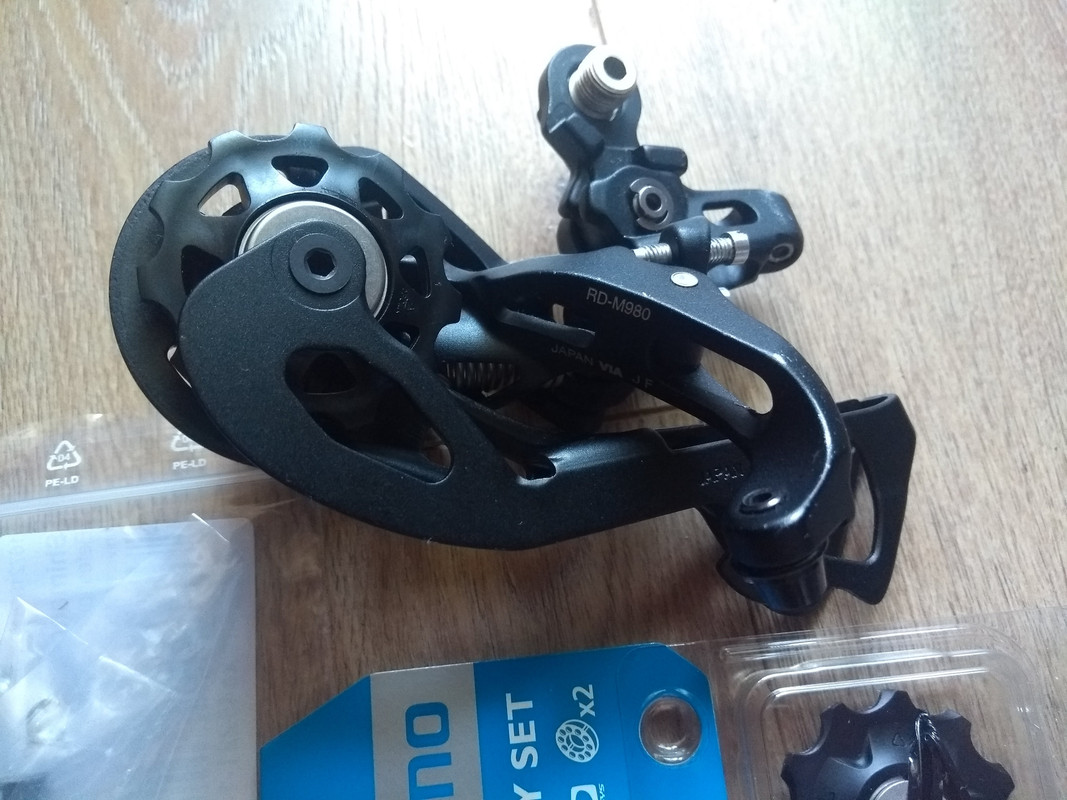 Переключатель со средней лапкой (GS), пробег совсем небольшой, лапка и ролики абсолютно новые (нижний ролик даже не ставился, правильный болтик с о-рингом в комплекте). Самый лёгкий из десяточных переключателей Shimano (175 г). Цена 7500 рублей.