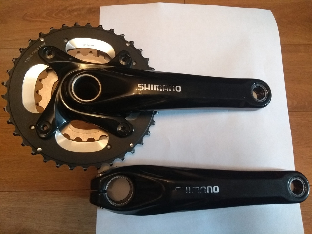 * Шатуны Shimano Deore FC-M627 (двойник), звёзды 38-24 от Shimano XT, без каретки - 3500 рублей. Шатуны отдельно 2000 рублей, звёзды отдельно не продаются. Могу заменить звёзды на деоровские 36-22 (фото по запросу), будет на 500 рублей дешевле.
