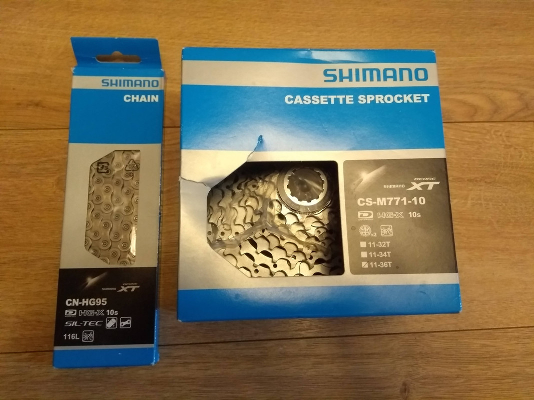 * Кассета Shimano XT CS-M771 (11-36), новая, кроме локринга и большого паука, у которых пробег 50 километров, плюс новая цепь Shimano XT CN-HG95, 116 звеньев - 7000 рублей за комплект. Кассета отдельно 4500 рублей, цепь отдельно не продаётся.