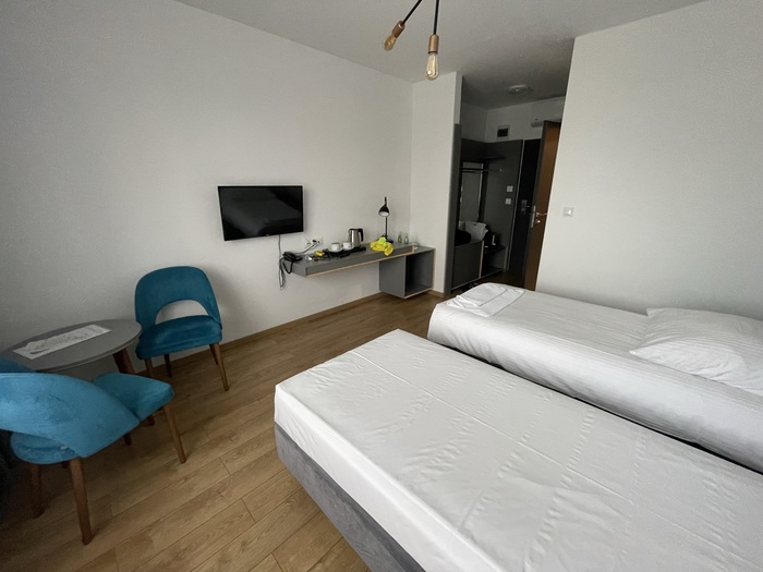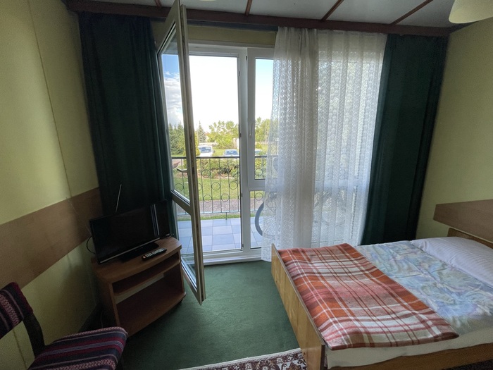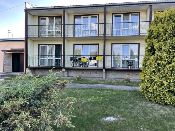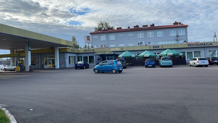 Мотель довольно-таки старый и немного уставший. Номер стоит 80 злотых (примерно 18 евро, примерно 1200-1300 рублей). Платил белорусской валютной картой, на которую предварительно закинул евро в Минске. Обменников от границы до мотеля не было. Велосипед загнал в подсобку, на улице не оставил.