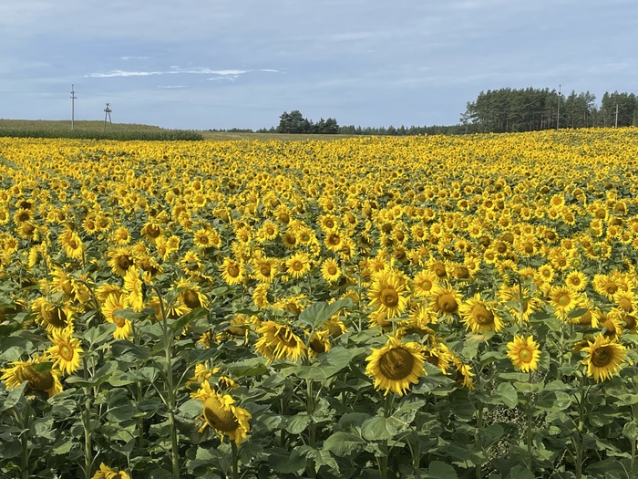 Дальше была прямая дорога на Белосток, но навигатор решил, что можно сделать круг по более спокойной дороге. И слава богу. Трафика там не было совсем, хороший асфальт, посёлки и подсолнуховые поля.