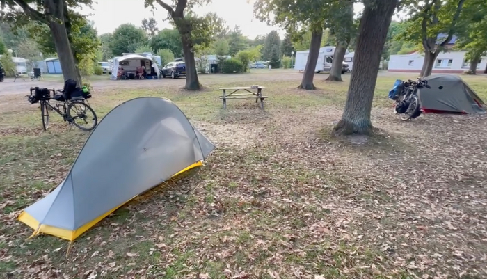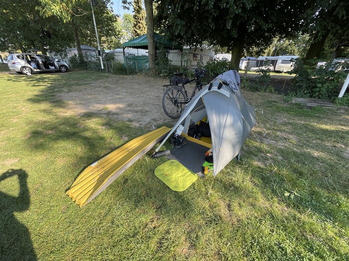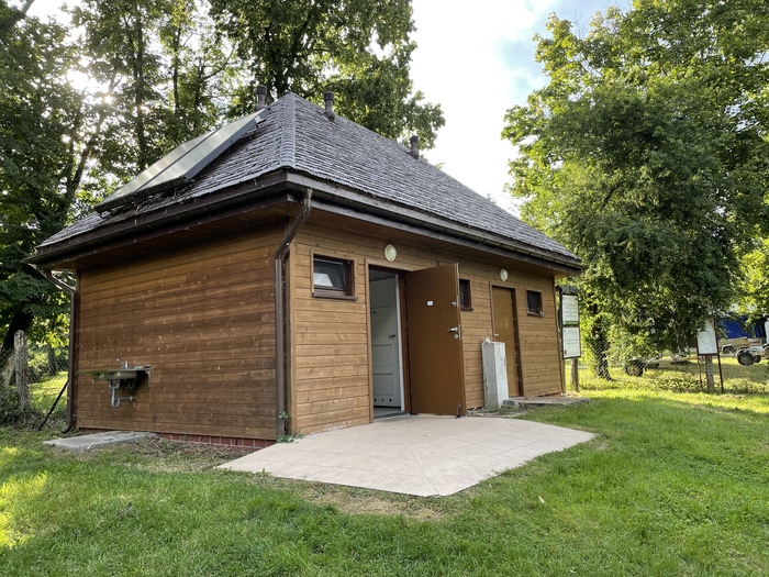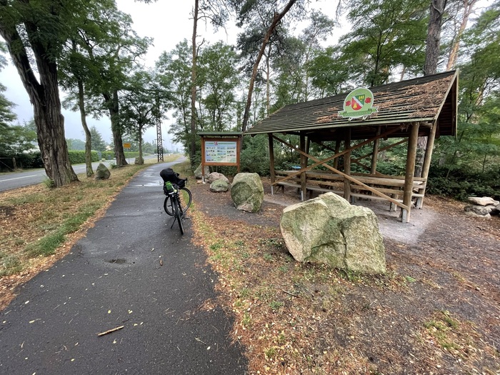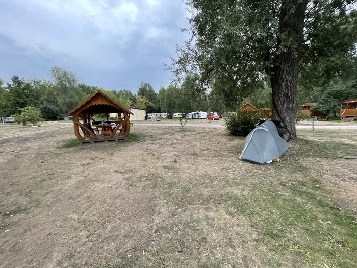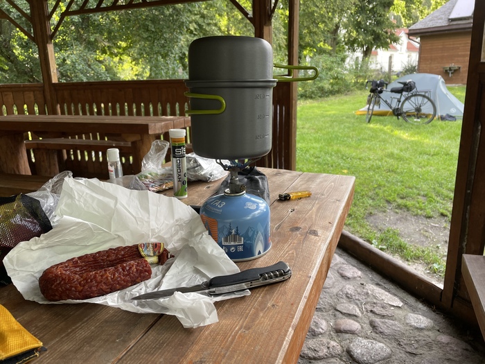 Присмотрел себе кемпинг. Немного в стороне от маршрута. В сторону километров 10. Кемпинг оказался небольшим. Стоял только один автодом с семейной парой. Стоил кемпинг 20 злотых (примерно 4,5 евро, примерно 315 рублей, если брать по курсу 70 руб за евро). Заплатил дистанционно картой. На доске висела инструкция как это сделать. В стоимость входит размещение и душ с туалетом. Всё довольно-таки чисто.