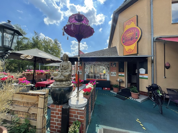 М1 нормальная четырёхполосная дорога. С ограничением в 120 км/ч и широкой асфальтированной обочиной. Трафик в субботу утром был большой, было шумно и очень жарко. Около +30. Дорога очень скучная, плоская и без тени. Примерно через 40 км остановился в небольшом парке у придорожной гостиницы. Там же в ресторане мне пополнили запас воды и даже кинули туда льда ). Несколько раз останавливался в беседочках в теньке возле дороги.