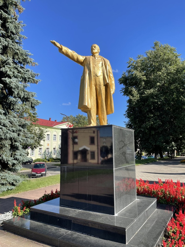 Докатился до Слонима. Остановился в центральной гостинице. Номер был маленьким, немного совковым, но очень чистым и приятным. Стоило это удовольствие 37 белорусских рублей (примерно 1000 российских рублей). Сходил в местный бар поужинать и выпить безалкогольного пива. Прогулялся по городу немного. Город уже типично западнобелорусский: костёл, барокко (восстановленные после войны, конечно), золотой Ленин и отсутствие людей. То ли из-за жары, то ли по причине выходного дня.