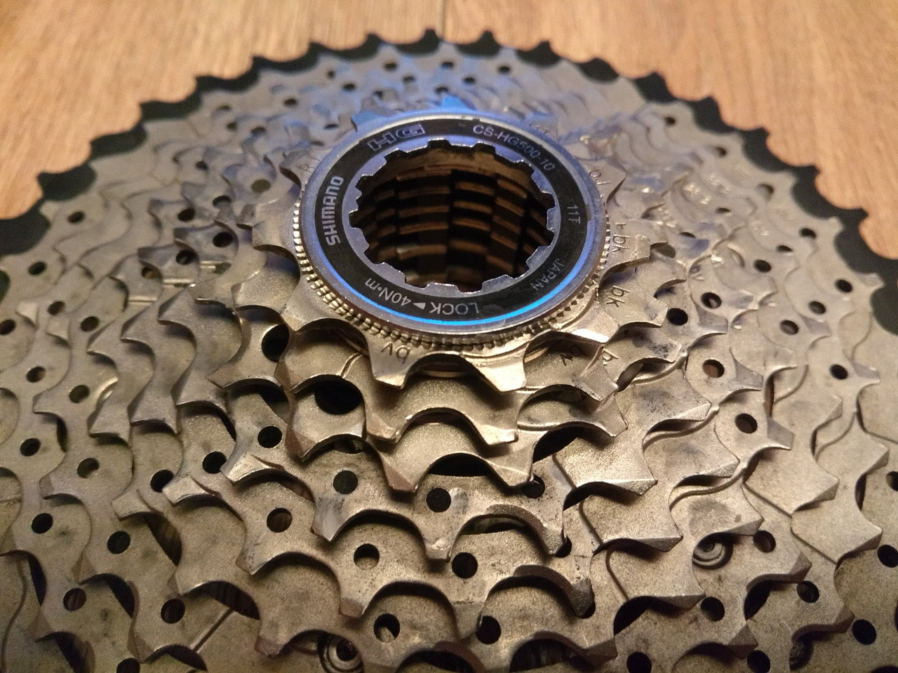 Есть умеренный износ, особенно на малых звёздах (см. фото), в соединительных штифтах имеется небольшой люфт, как и всех таких кассетах, но в целом состояние рабочее.
