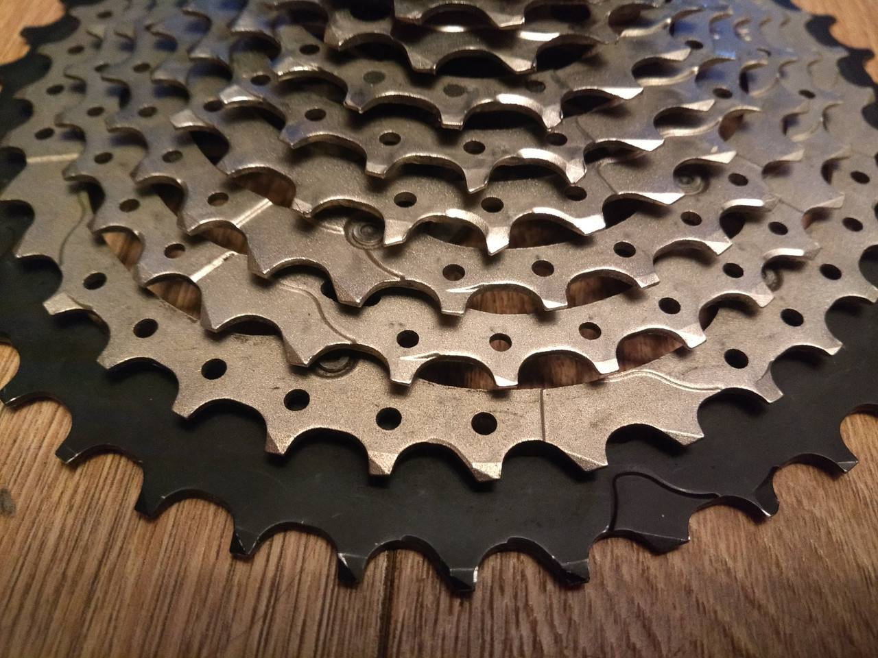 Набор звёзд 11-13-15-18-21-24-28-32-37-42. Легче, чем более новые кассеты m4100 (примерно на 70 г).